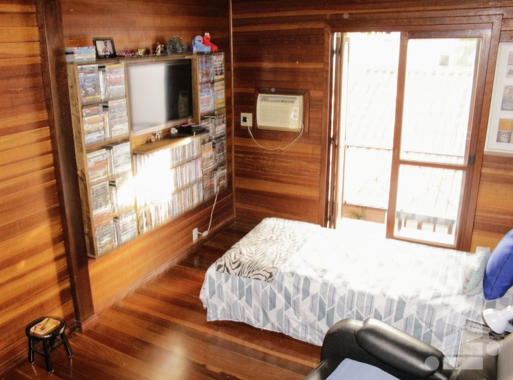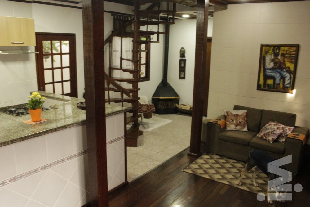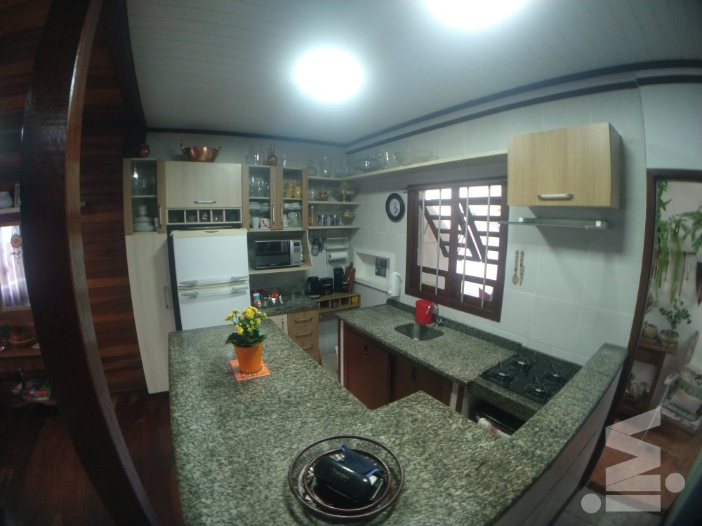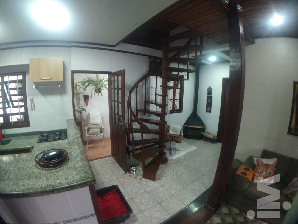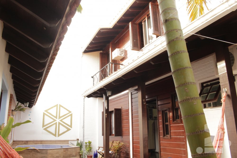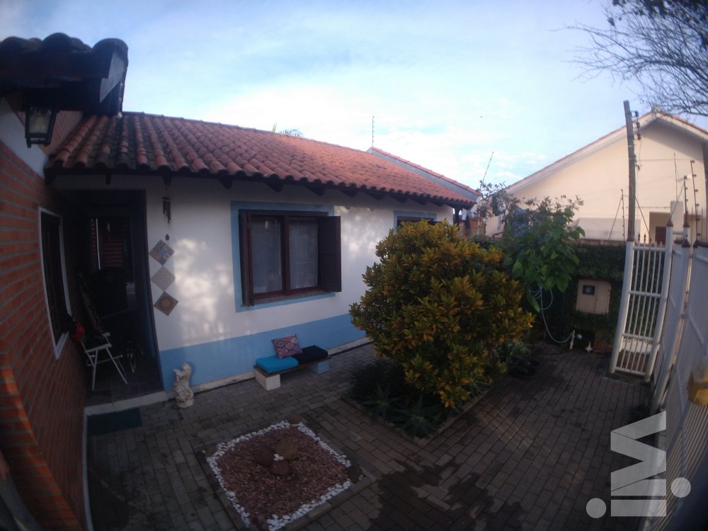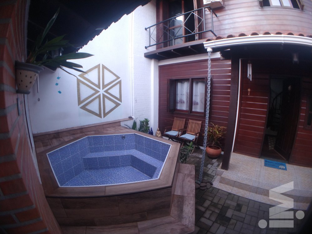Sobrado de alvenaria com cobertura em madeira nobre, 03 dormitórios, sacada, com 125m² terreno com 200m², posição solar oeste, cozinha conceito aberto, living 3 ambientes, lavanderia, banheiro social, jardim, garagem para 01 carro, pátio, piscina. + Casa com 1 dormitorio, cozinha conceito aberto integrada com sala de estar/jantar, banheiro.