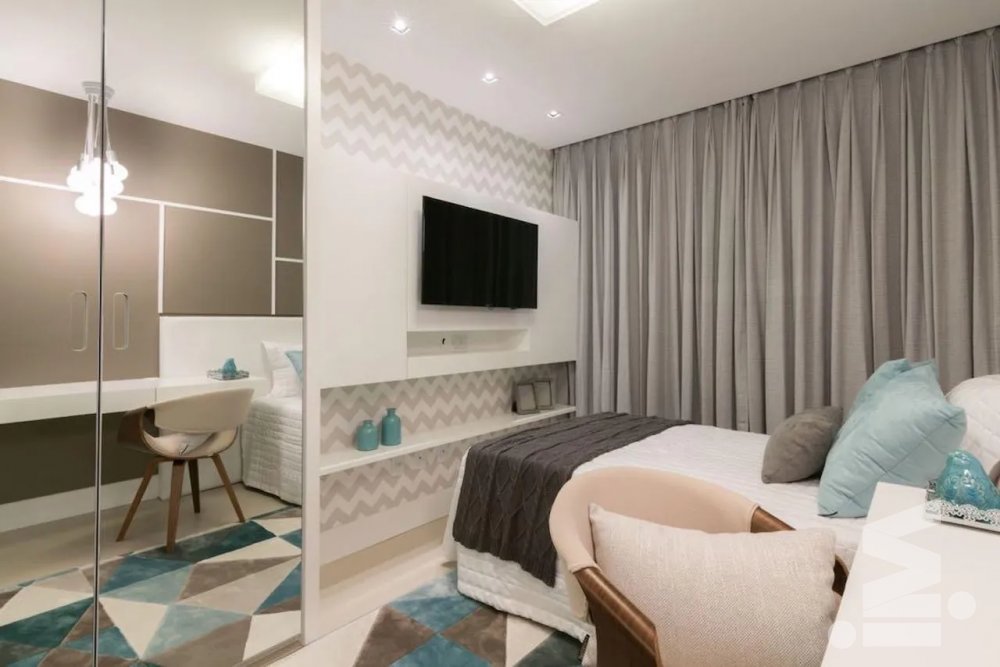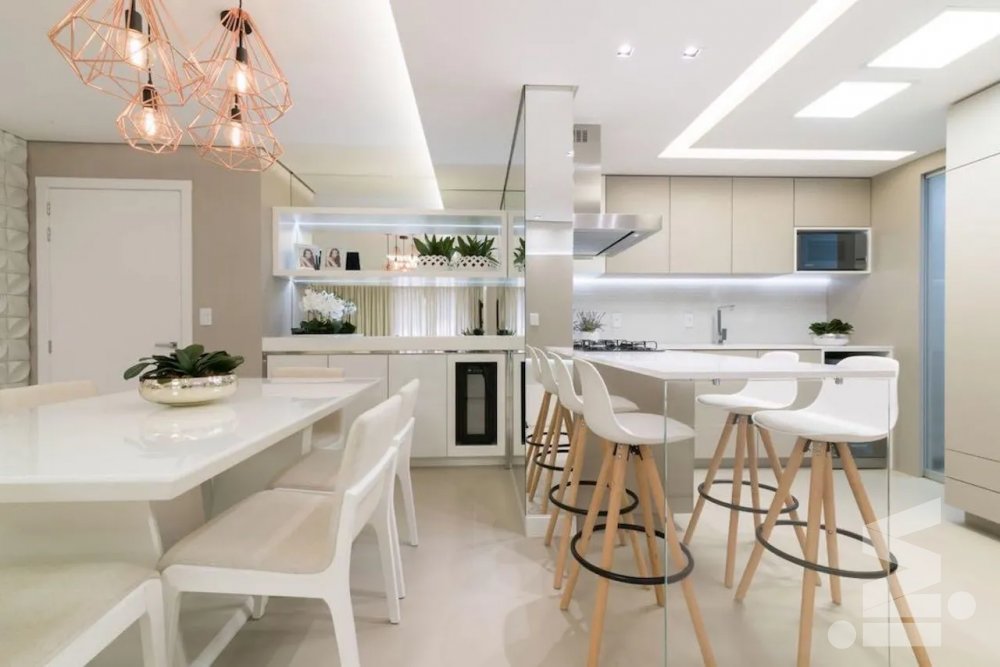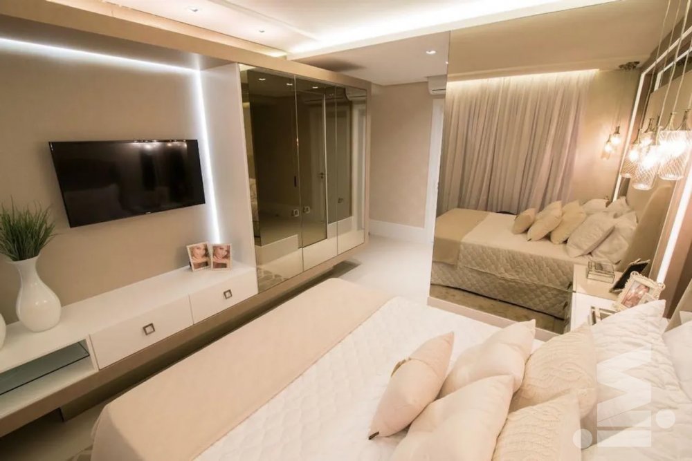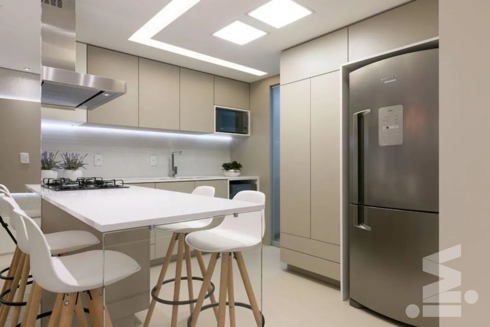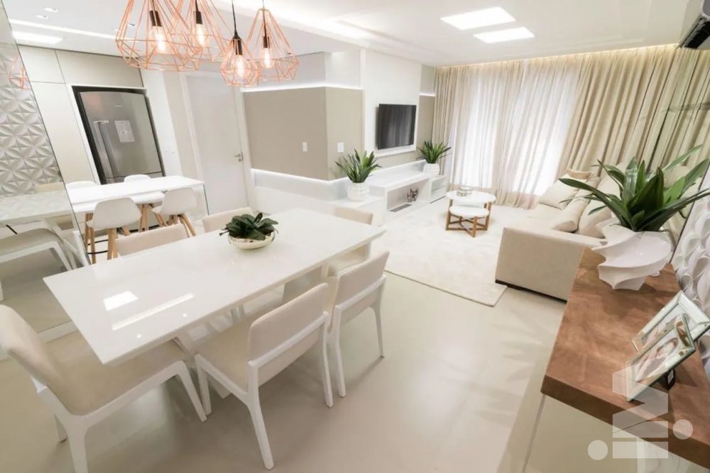 Apartamento mobiliado de dois dormitórios, sendo um com suíte de 150m², com varanda, posição solar norte, sala de estar/jantar, cozinha e banheiro social.