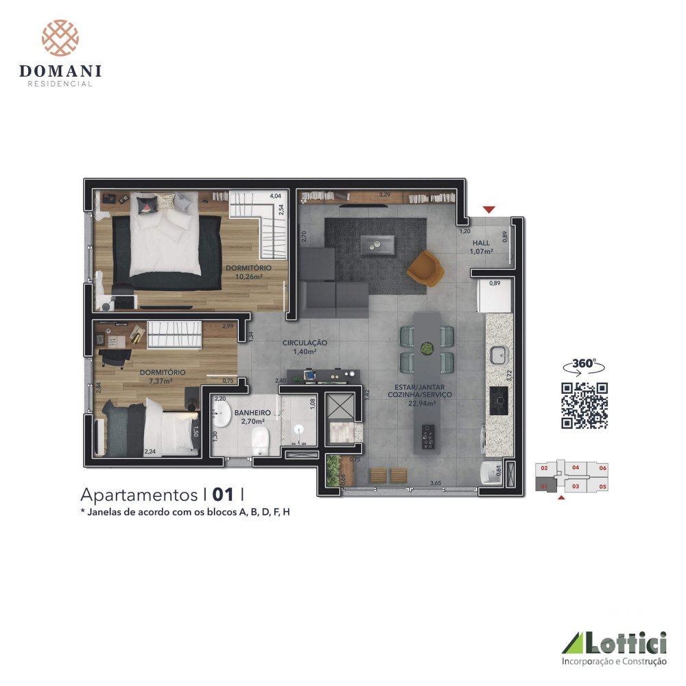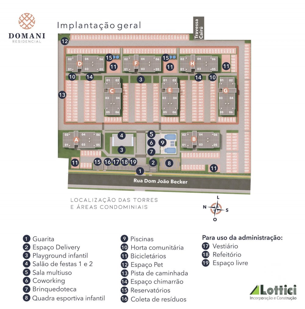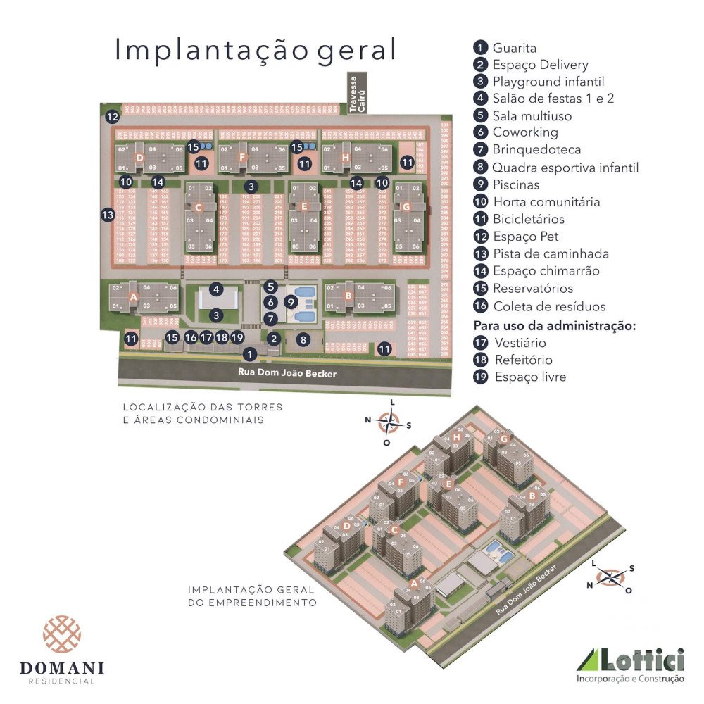 Infraestrutura do condominio: Salão de Festas, guarita, playground infantil, quadra esportiva infantil, churrasqueira, elevador, brinquedoteca, medição gás individual, medição água individual, piscina, espaço delivery, sala multiuso, coworking, horta comunitária, bicicletário, espaço pet, pista de caminhada, espaço chimarrão.