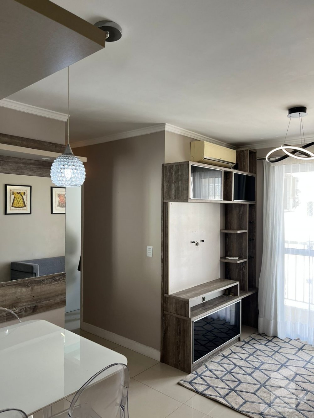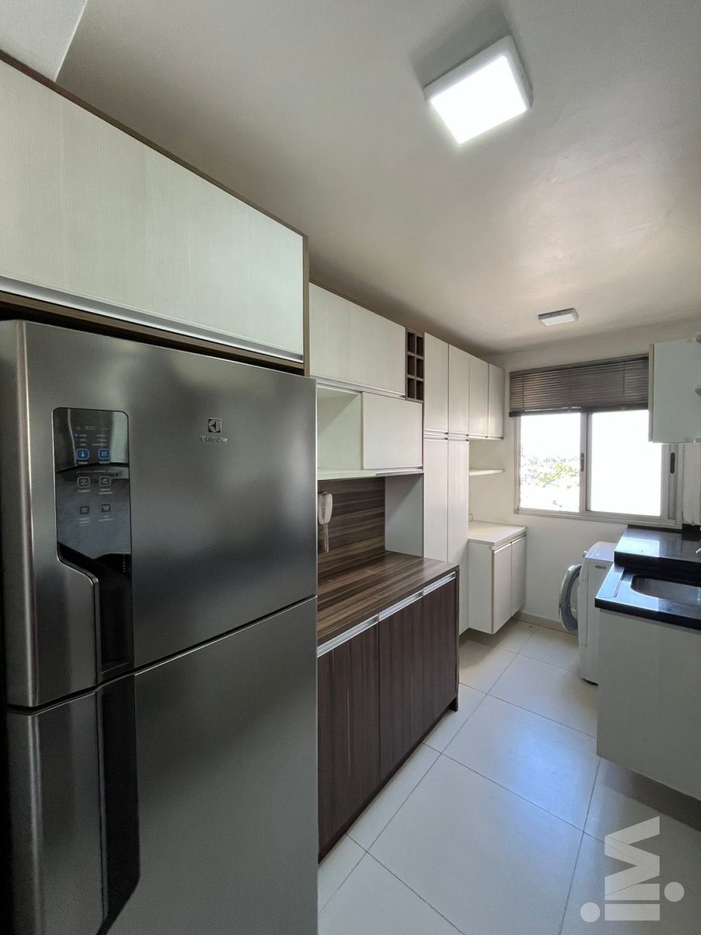 Apartamento 3 dormitorios, mobiliado, 58m², orientação solar oeste, sala estar/jantar, banheiro social, cozinha, lavanderia, box de estacionamento.