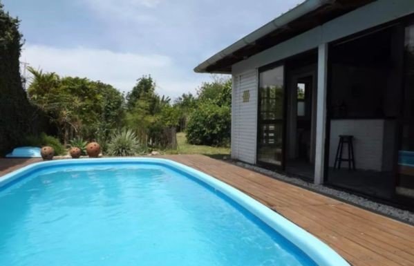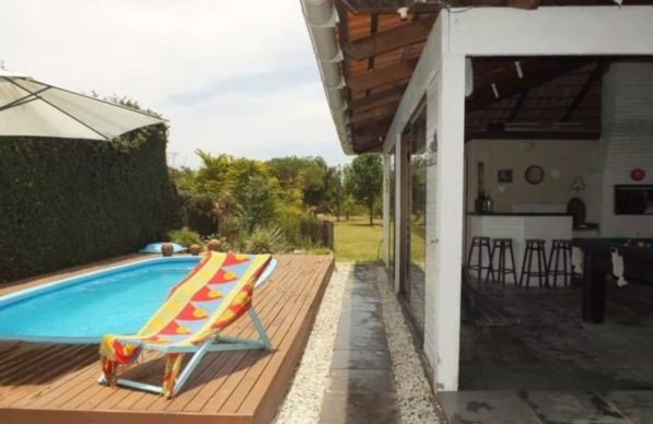 Casa com 02 dormitórios, 01 suíte, terreno 10x80, posição solar oeste, living 02 ambiente, cozinha, área de serviço, depósito, pátio, churrasqueira, piscina 3x6, edícula, salão de festas, garagem.