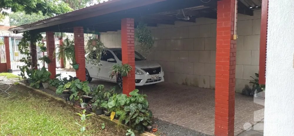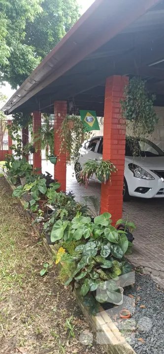 Casa de três dormitórios, com sala, cozinha, banheiro social, garagem coberta com vaga para dois carros, churrasqueira e lavanderia.