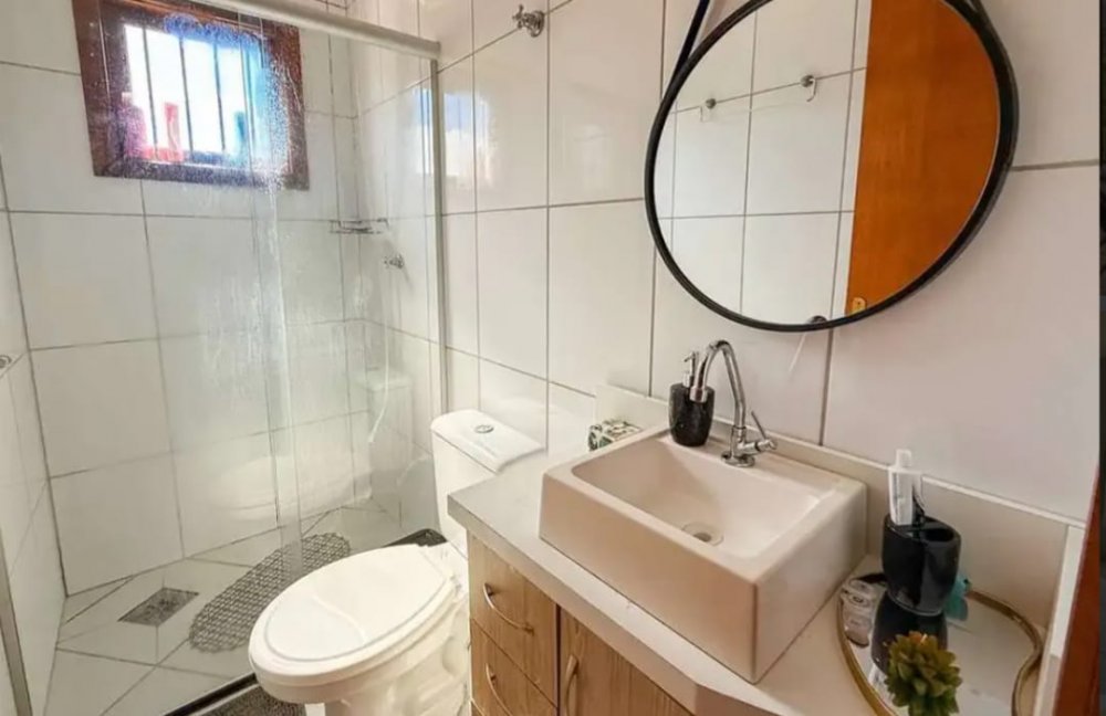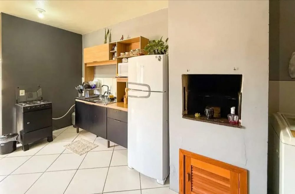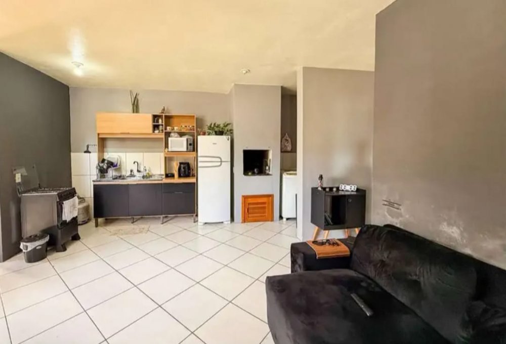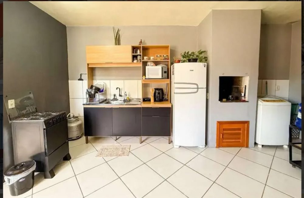 Casa em condominio 1 dormitorio, 47m², orientação solar sudeste, sala estar/jantar integrada com cozinha, churrasqueira, banheiro social, vaga de estacionamento.