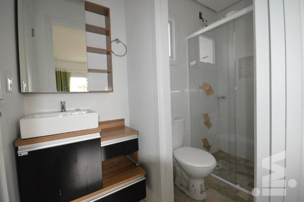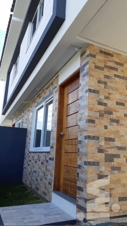 Sobrado de 3 dormitórios, com 1 com suíte, de 91m², orientação solar oeste, living 2 ambientes, banheiro social, lavabo, lavanderia, pátio, churrasqueira e garagem para 2 carros.