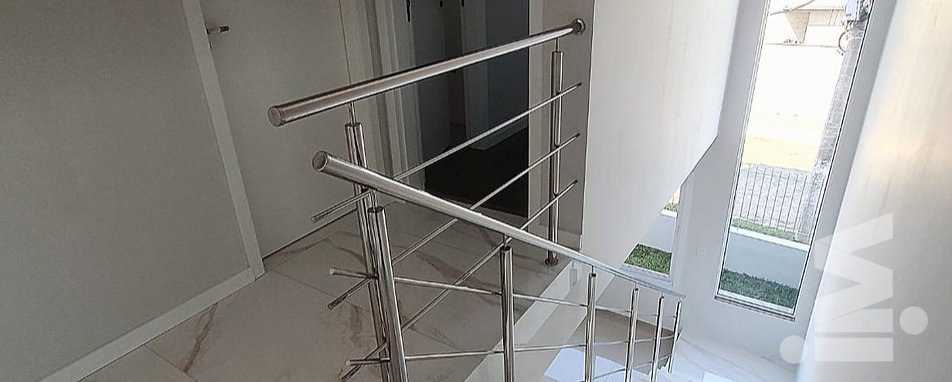 Sobrado 3 dormitorios, sendo 1 suíte com closet e sacada e 2 suites americanas, 132 m², orientação solar leste, living totalmente integrado, lavabo, cozinha americana com opção de ilha, porcelanato nas areas sociais, escada com vitro, revestida e corrimão em aço inox polido, lareira, sancas e acabamentos em gesso, laminado nos dormitorios, agua quente em todos os pontos, esperas para split, reservatorios d'agua, gás, medidores individuais, janelas em aluminio, porta principal pivotante em madeira, churrasqueira, pátio com aprox. 73 m2 na frente e na lateral possibilitando instalação de piscina com privacidade 3 vagas de estacionamento, ótima área frontal e pequeno quintal nos fundos.