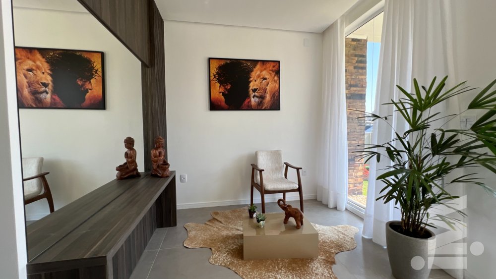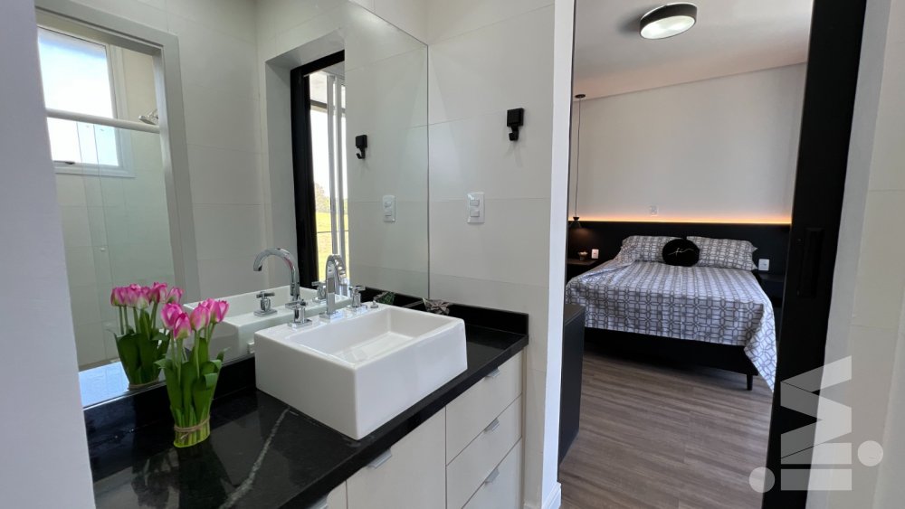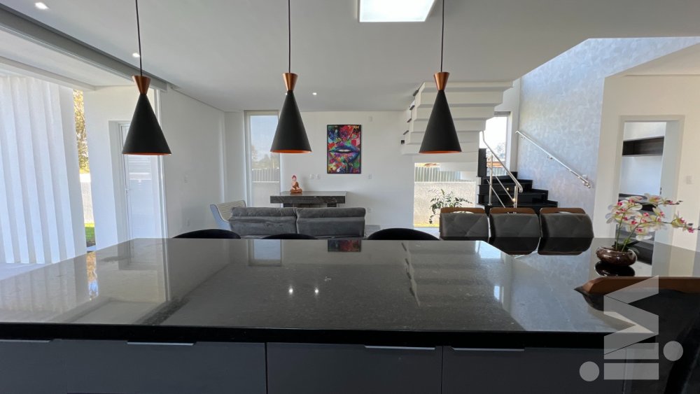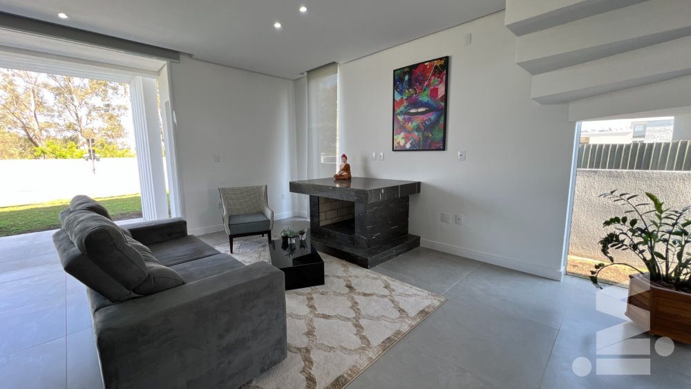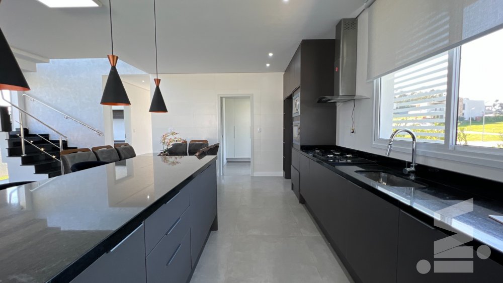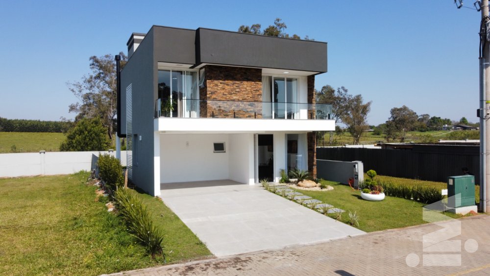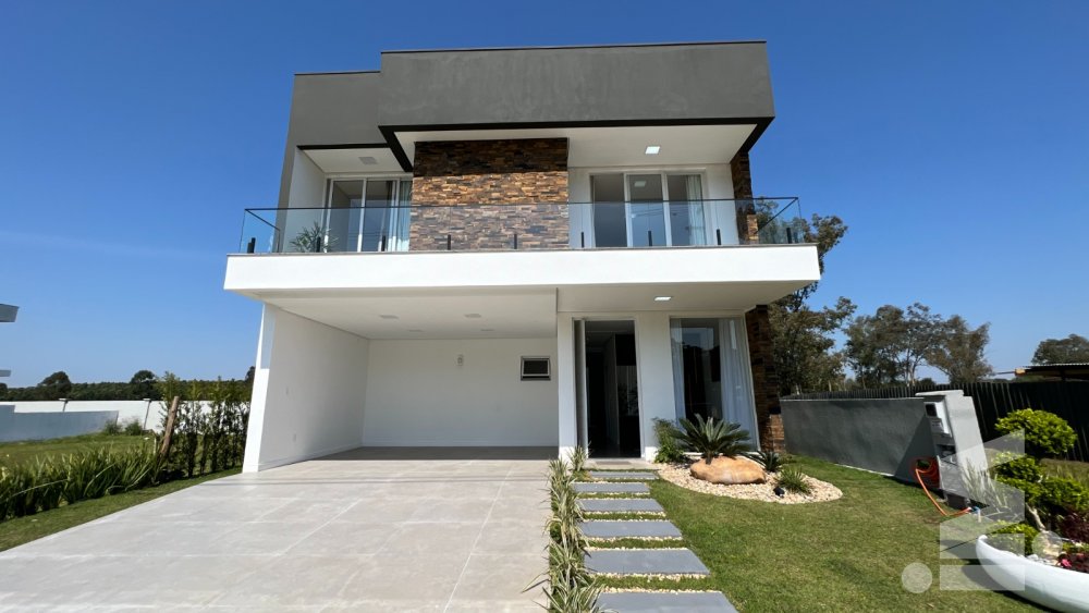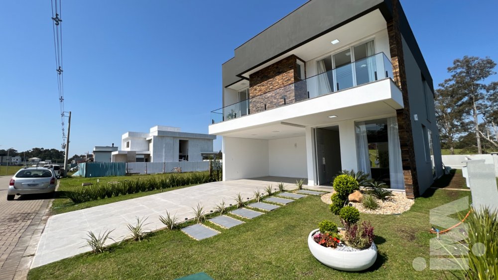 Excelente Sobrado em Condomínio com 4 suítes com sacada, 257m², hall de entrada, living 2 ambientes, lareira, cozinha conceito aberto, espaço gourmet, lavanderia, sala intima, garagem coberta para 2 carros lado a lado, jardim, pátio com espaço para piscina.